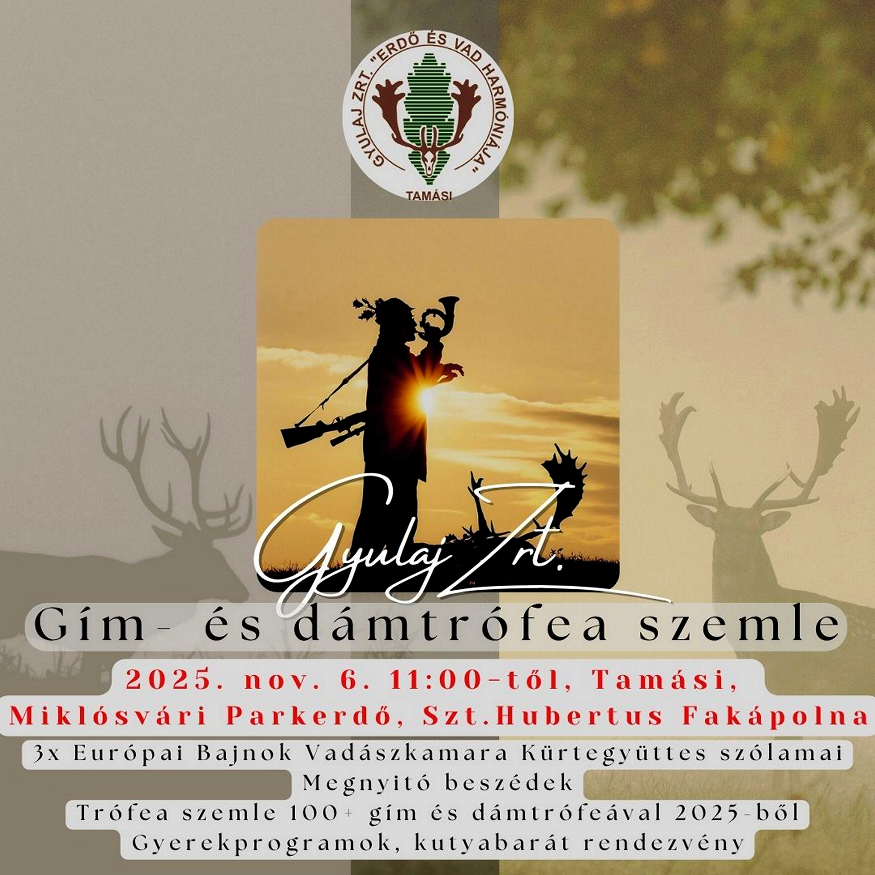 Kihelyezett trófeabírálatot tartott a Tolna Vármegyei Kormányhivatal Agrárügyi Főosztály Vadászati Halászati és Földművelésügyi Osztálya, valamint Döbrössy Szabolcs tájegységi fővadász vett részt a Gyulaj Erdészeti és Vadászati Zrt. Hőgyészi vadászterületén elejtett bikák trófeáinak hatósági értékelésén, 2025. október 2-án a Gyulaj Zrt. Szálláspusztai vadászházában.